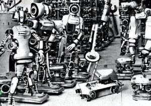 The Industrial Revolution roared into the 19th century, fueled by steam and steel. In this new world, robots weren’t just parlor tricks; they became the muscle of factories. Joseph Jacquard’s loom wove complex patterns with automated precision, while steam-powered cranes and excavators transformed the landscape. These machines weren’t humanoid or graceful, but they were powerful and tireless, their rhythmic clanging a hymn to the rise of the robot age.